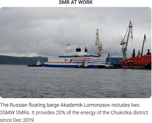 - China and Russia plan to use SMR for some isolated urban thermal networks and supply mines.