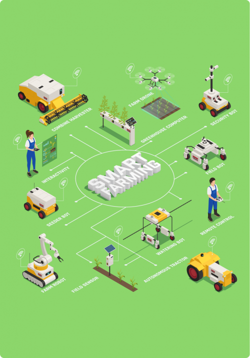 After data is collected & stored in real-time, it is analyzed with ML & AI techniques to optimize processes including seeding, ploughing, fertilizing and spraying.