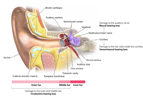 Hearing loss, the partial or total inability to hear, is one of the leading causes of disability worldwide and is related to age, genetics, exposure to noise, and the use of certain drugs. It leads to severe social and economic consequences.
