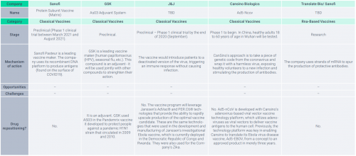 - Moderna is leading the race of the vaccine development and is already in Phase 1, using a mRNA- based approach.