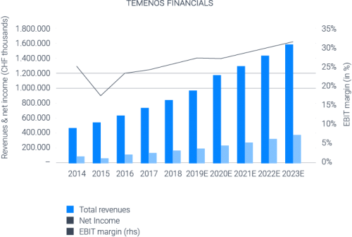 - Quarterly bumps cannot be ruled out. In its Q3 2019 results, Temenos confirmed its guidance, despite lower software licensing revenues (+7% Y/Y vs +15% expected).