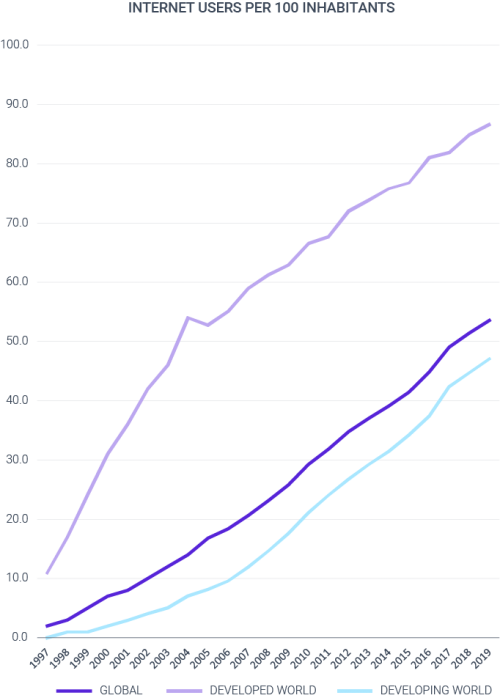 - Three-quarters of the unconnected population resides in just 20 countries – almost 3.6bn people still lack internet connection or do not use it.