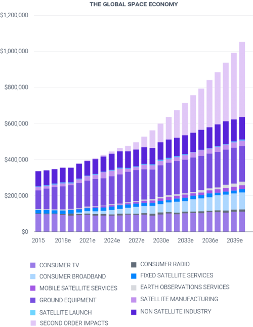 The space economy is facing a steep boost in investments and projects. Its market size is forecast to rise almost three-fold in the next two decades.